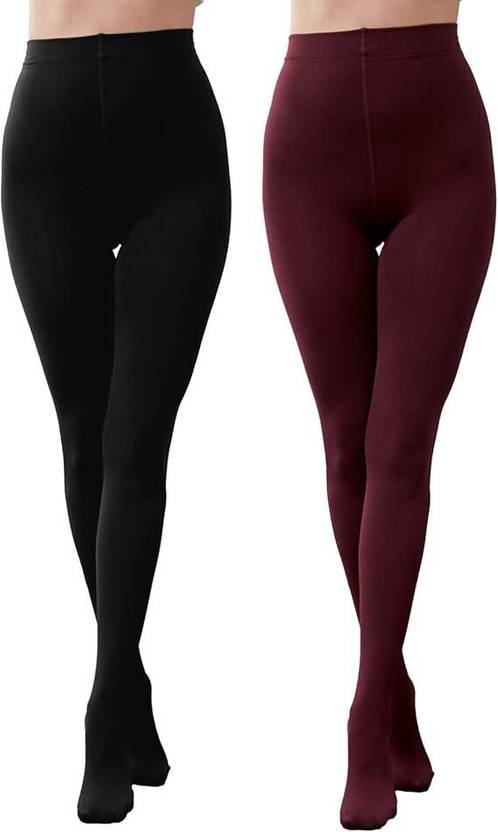 2 Pairs Fleece Lined Tights Women Opaque Tights for Winter