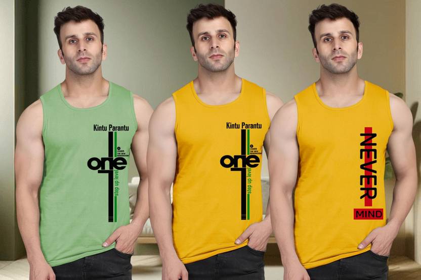 Men printed round neck sleeveless sando material type polyester