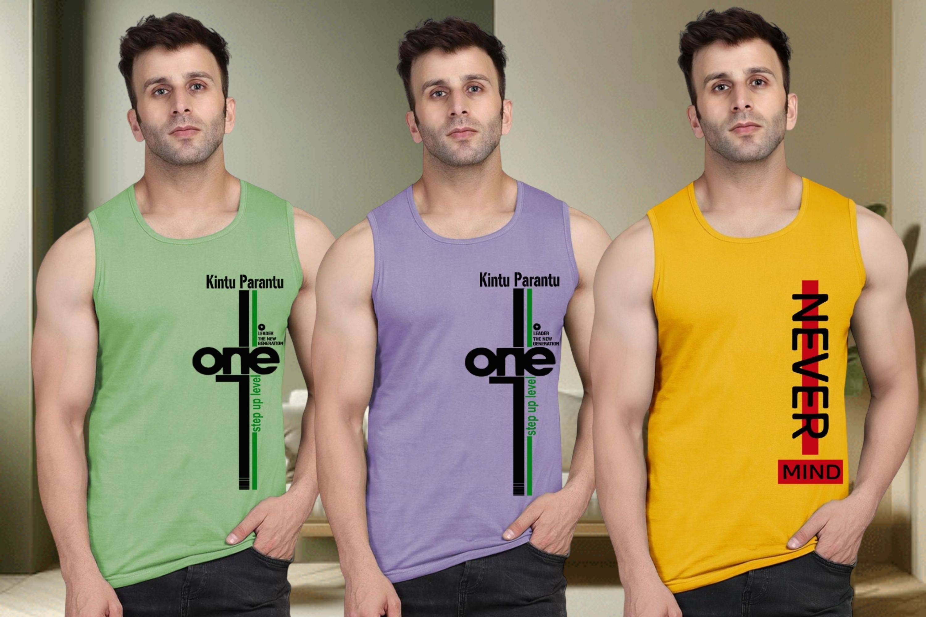 Men printed round neck sleeveless sando material type polyester
