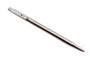 Super mini size ballpoint pens with height 4.2 inches only & weight is just 7 grams . Brushed steel slim metal body pen with chrome trims . Pen has unique button press as ON and clip press as OFF mechanism . Pen comes fitted with standard size small metal refill in blue ink with medium point . Pen is loose , without any box .