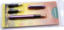 Calligraphy set from Hero including a quality Hero 5028 plastic fountain pen, three screw in nib assemblies, converter and a 15 ml bottle of ink. Everything you need to get started in Calligraphy - with the assurance of Hero Quality. The screw in nib assemblies make changing nibs a breeze and the pen takes standard International Cartridges which we have in a range of colors. Calligraphy is a lot of fun but if you're not into these sets are great for testing and reviewing inks. You can create a range of varying width lines to check or demonstrate an ink's depth of color and shading properties. If you like a really broad nib the nib is excellent for normal writing. An excellent value Calligraphy set which would make a wonderful gift