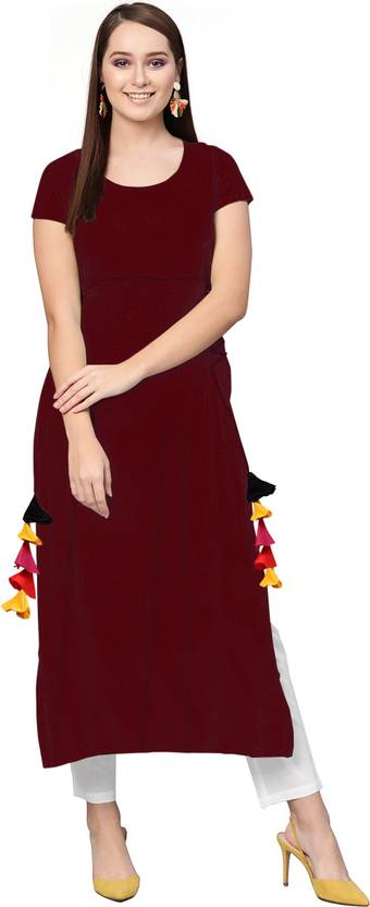 Ledy Queen Women Solid Straight Kurta (Maroon)