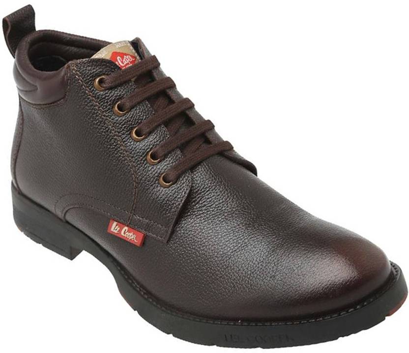 Lee cooper A perfect addition to your footwear collection, this pair of boots is brought to you by Lee Cooper. It is made from leather which lends it a refined finish. Also, being made ethylene vinyl acetate, the sole ensure optimum traction while the lace up fastening ensures a proper fit.
