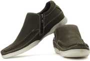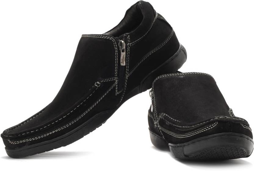 All black and all stylish, these casual loafers from Lee Cooper come with a Nubuck leather exterior that highlights elastic gussets and a side zipper which also deliver a comfortable fit. The leather and fabric interior softens your every step so that your stride is ever so relaxing. Team them with cargo pants and a black polo neck t-shirt.