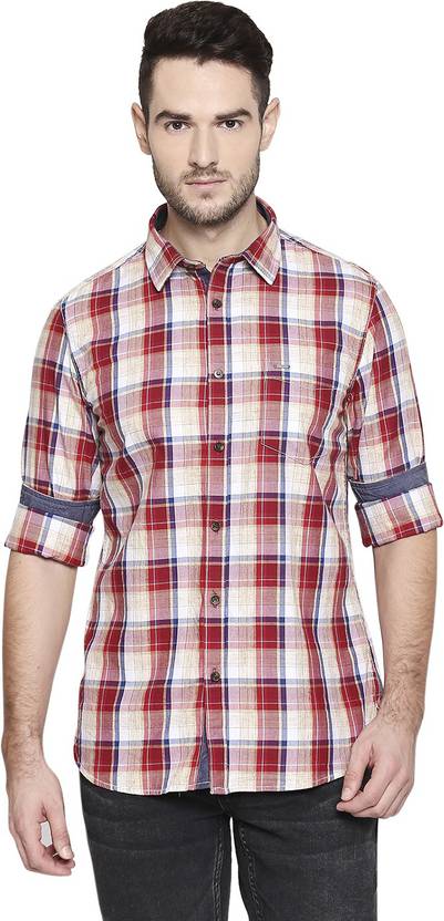 Men Regular Fit Checkered Button Down Collar Casual Shirt