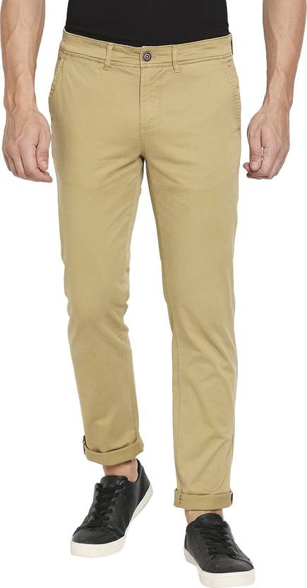 Men Slim Fit Khaki Pure Cotton Trousers