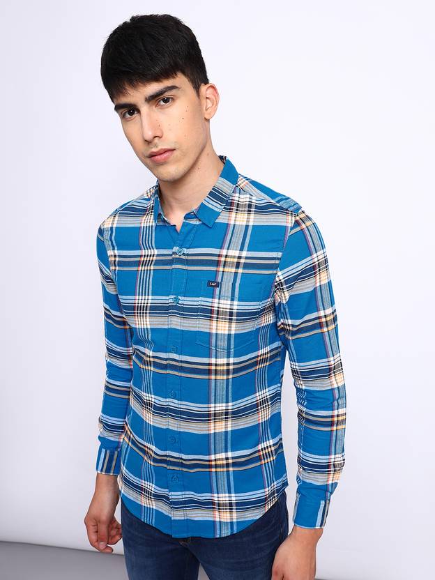 This refreshing blue Lee shirt is a must-have piece in your wardrobe. It features a classic collar, a slim fit, and a checkered pattern that will make you stand out. Made from 100% cotton, it is comfortable and breathable. Team it up with denim shorts and sneakers for a casual look.
