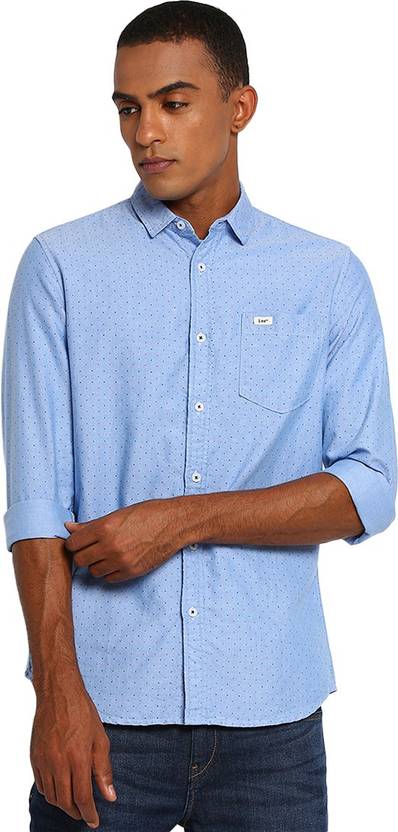 LEE Men Self Design Casual Blue Shirt