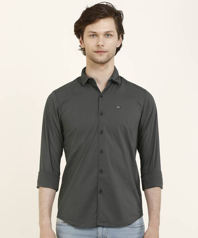 LEE Men Solid Casual Grey Shirt