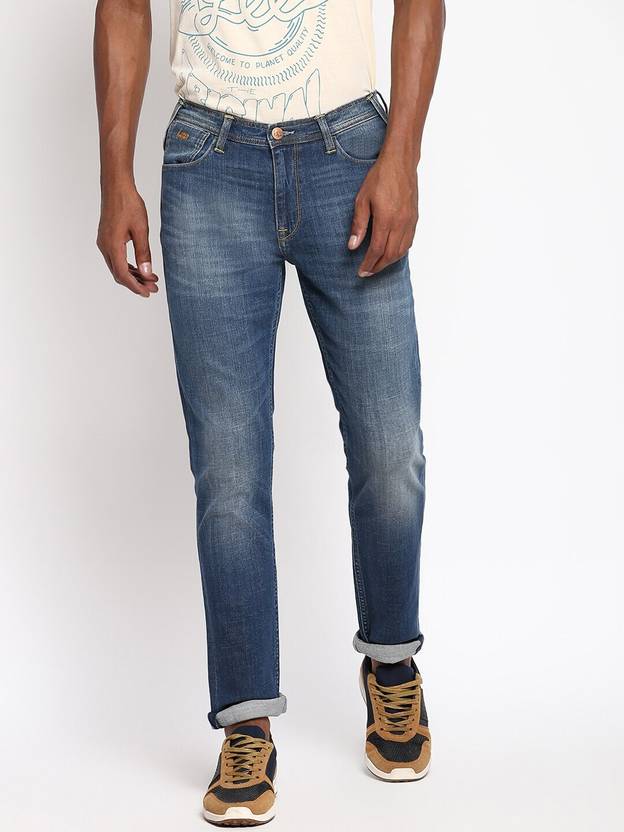 Medium shade, light fade blue jeans Skinny fit, mid-rise Low distress Stretchable 5 pocket Length: regular