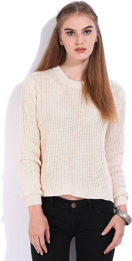 LEE Solid Round Neck Casual Women Pink Sweater