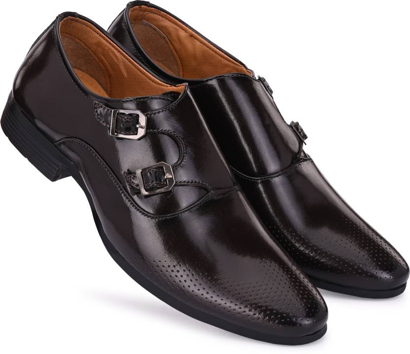 LEEPEETER Monk Strap For Men (Brown , 9)