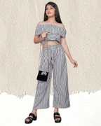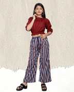 This girls' designer top with a matching trouser palazzo pant set is the perfect combination of style and comfort. Crafted from smooth, soft, and lightweight fabric, it ensures all-day wearability with a gentle feel against the skin. The elastic waistband offers a flexible and comfortable fit, allowing for ease of movement. Ideal for special occasions such as birthdays, weddings, parties, or summer outings, this set is designed for girls ages 4-5 years to 15-16 years, making it a versatile addition to any young fashionista's wardrobe. The trendy yet comfortable design makes it a go-to choice for both casual and elegant occasions.