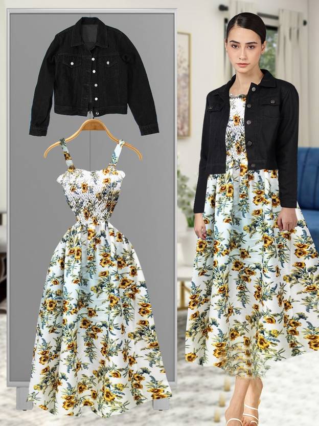Dress With Jacket Women/Girls 100% Premium Quality Material Women Stylish Jacket With Dress COMBO (PACK OF 2) Urbane Latest Women Dresses With Jacket. Knee Length Dress & Regular Denim Jacket COMBO.