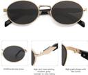 Stainless Steel Frame : Crafted from good quality stainless steel, the frame of these oval sunglasses ensures exceptional durability and longevity. This sturdy construction not only adds a touch of sophistication but also provides a reliable and long-lasting eyewear solution that withstands daily wear and tear.