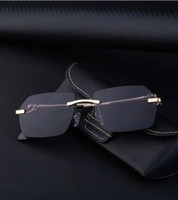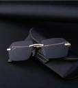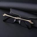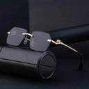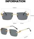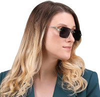 Featuring a rimless structure combined with a retro square outline, this pair of sunglasses reflects a contemporary yet timeless approach to everyday style. Subtle metallic detailing along the gold-toned edges adds refinement. Further, the textured finish on the temples introduces a distinct contrast that enhances visual depth. Together, these details create an understated yet expressive design.