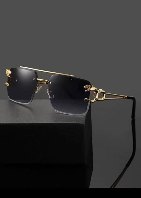 MC Stan Luxury Vintage Gold Frame Rectangular Premium Designer UV400 Protected Sunglasses For Men And Women | Gold Frame Black Lens Unisex Eyewear