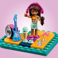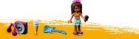This toy set includes a mini-doll figure of Andrea, a microphone, a guitar, a speaker, headphones, sunglasses and ice-cream accessory elements.