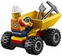 Features a dumper with tipping bed and space for a minifigure, also includes a research station with space for golden nugget elements and a rock pile with breakaway elements, space for a dynamite stick element and golden nugget elements