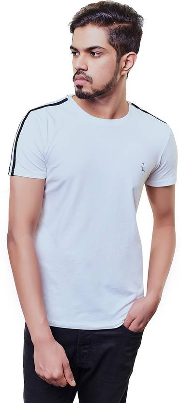 Legrein Men Colorblock Round Neck Cotton Blend White T-Shirt