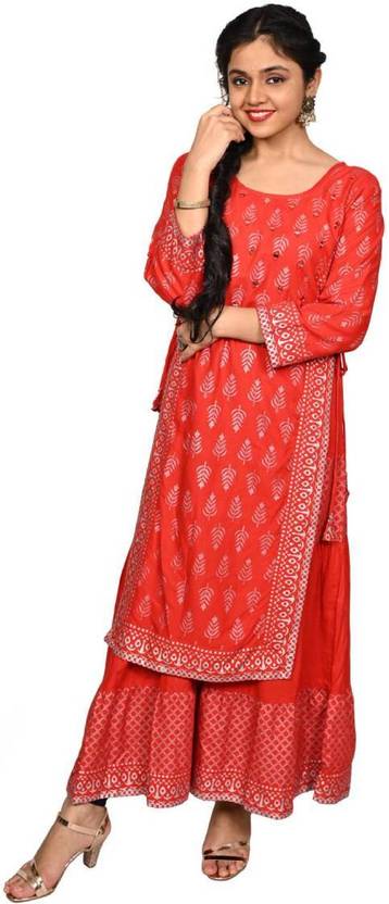 Fabric: Rayon fabric, Colour Availability: Red, DESIGN: Traditional festive design to help you create a unique outlook, will keep you comfortable all day long. It is light in weight and will be soft against your skin., OCCASION: Party, festive, wedding wear, traditional wear. Best gift for your loved ones., PRINT: Floral Print Dress, PACKET CONTAIN: 1 Readymade Dress, REMARK: Model (height 5'6") is wearing a size "M", Accessories is just for presentation, it is not include with this product., NOTE: It is capable of making you look gorgeous. Wear it and put your step in the world of fashion. It looks stunning every time you match it with accessories.