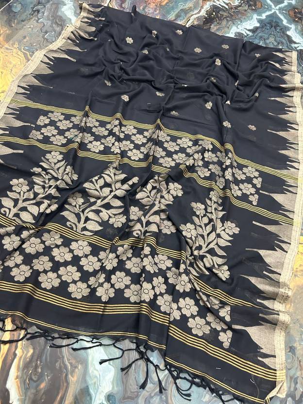 Self Design, Printed Handloom Cotton Blend Saree (Multicolor)