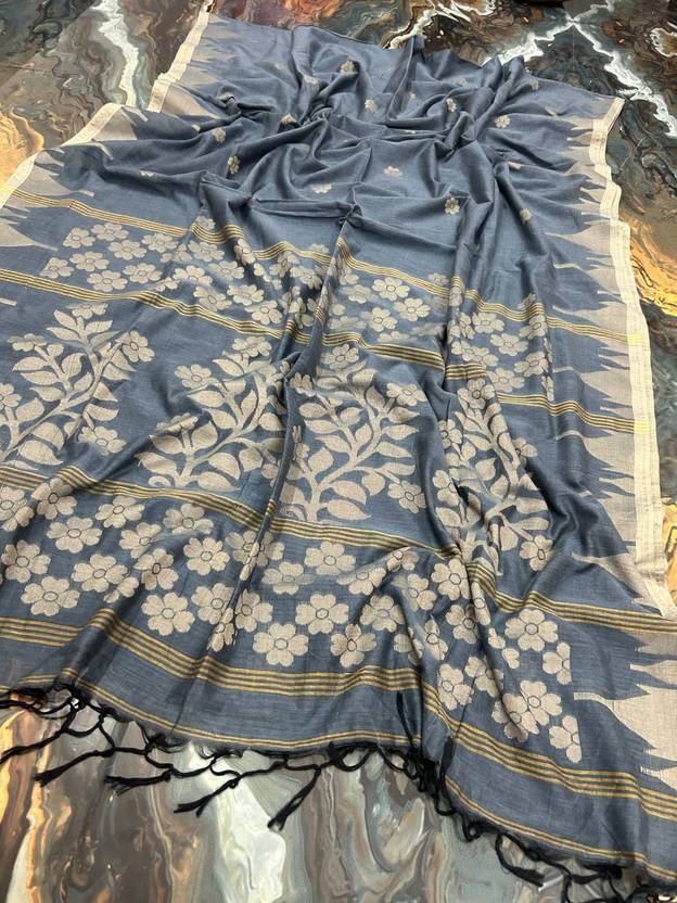 Self Design, Printed Handloom Cotton Blend Saree (Multicolor)