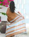 Striped Handloom Cotton Blend Saree (Beige, White)