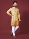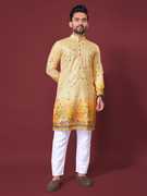 Try a desi boy look with this timeless Multicolour men’s kurta. The pure cotton fabric With CROCHET Work Kurtas using to attain these bright coloured Names all over. The rest of the outfit features a mandarin collar, a placket and full sleeves with a straight hemline. Invest in this for the upcoming festive season.