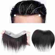 Men's Frontal Forehead Hairline Human Hair Patch Thin Skin PU for Covering Male Receding Hairline, Natural Black