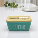 Lemon Tree Large Ceramic Butter Box with Wooden Lid & Knife | Butter Storage Container | Butter Dish Serving Set (Pack of 1)