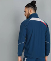 This is a sports jacket for men that has been tailored with a sporty theme and has an attractive colour-block pattern all over. The colour-block pattern is what gives the jacket a distinguished look when worn. The jacket can be worn during sports activities such as walking, running, cycling, gym activities, stretching exercises, etc. The casual theme of the jacket allows it to be worn to perform your other chores, too, like running errands, shopping, etc.