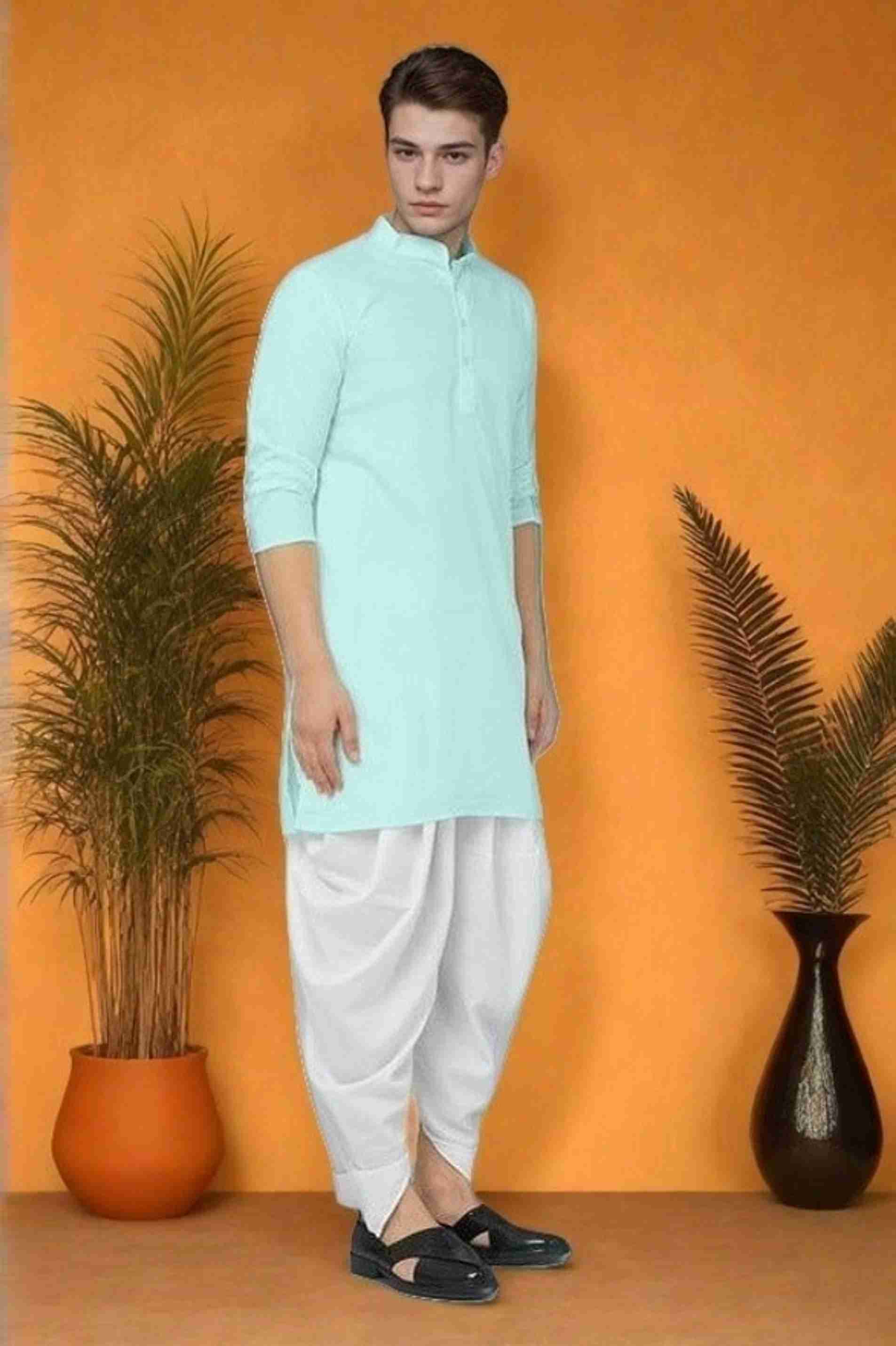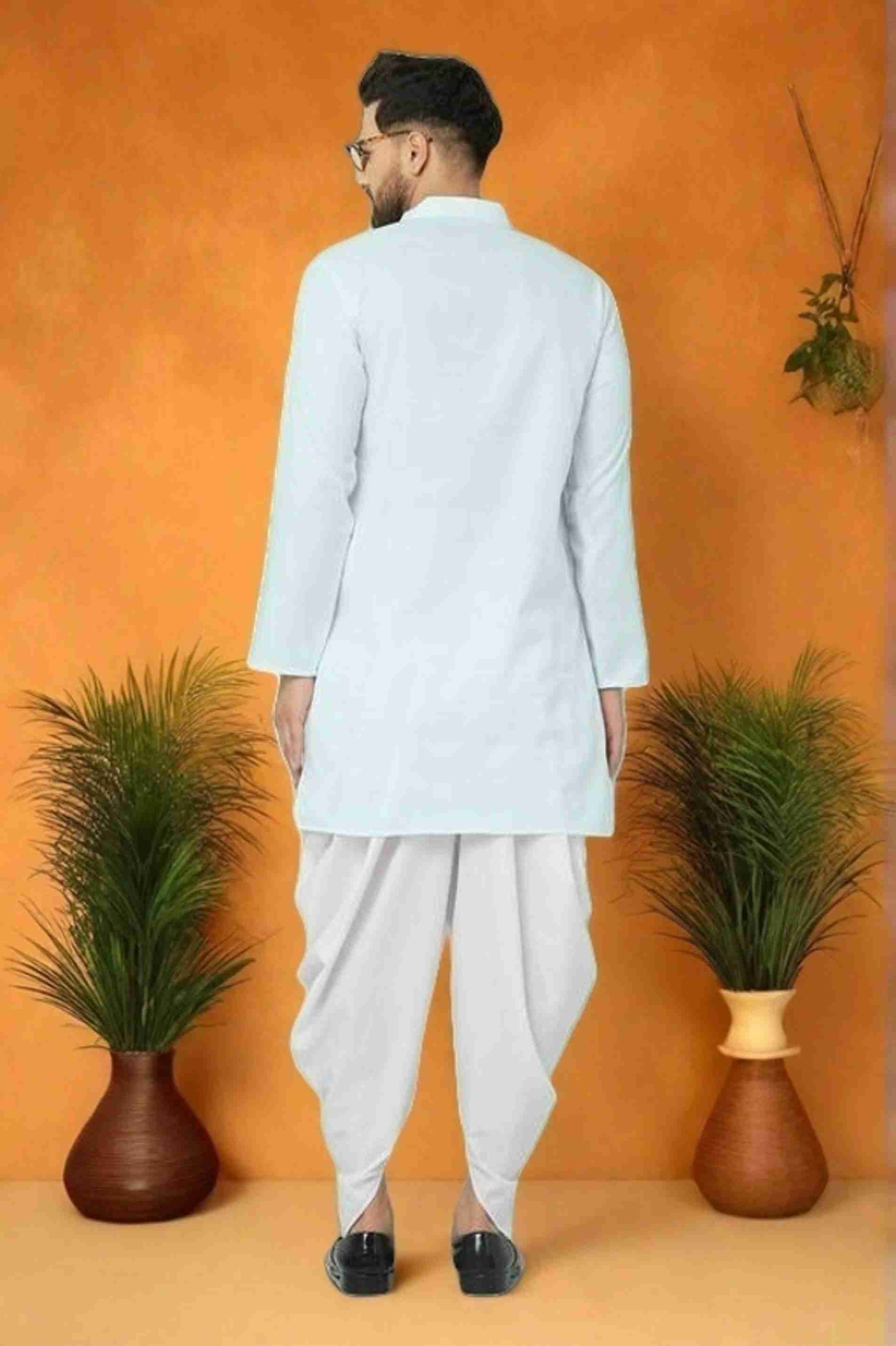 Step into the world of tradition with this stylish kurta and dhoti set for men. Designed with a focus on comfort and a seamless ethnic look, the kurta features a classic collar and long sleeves, while...