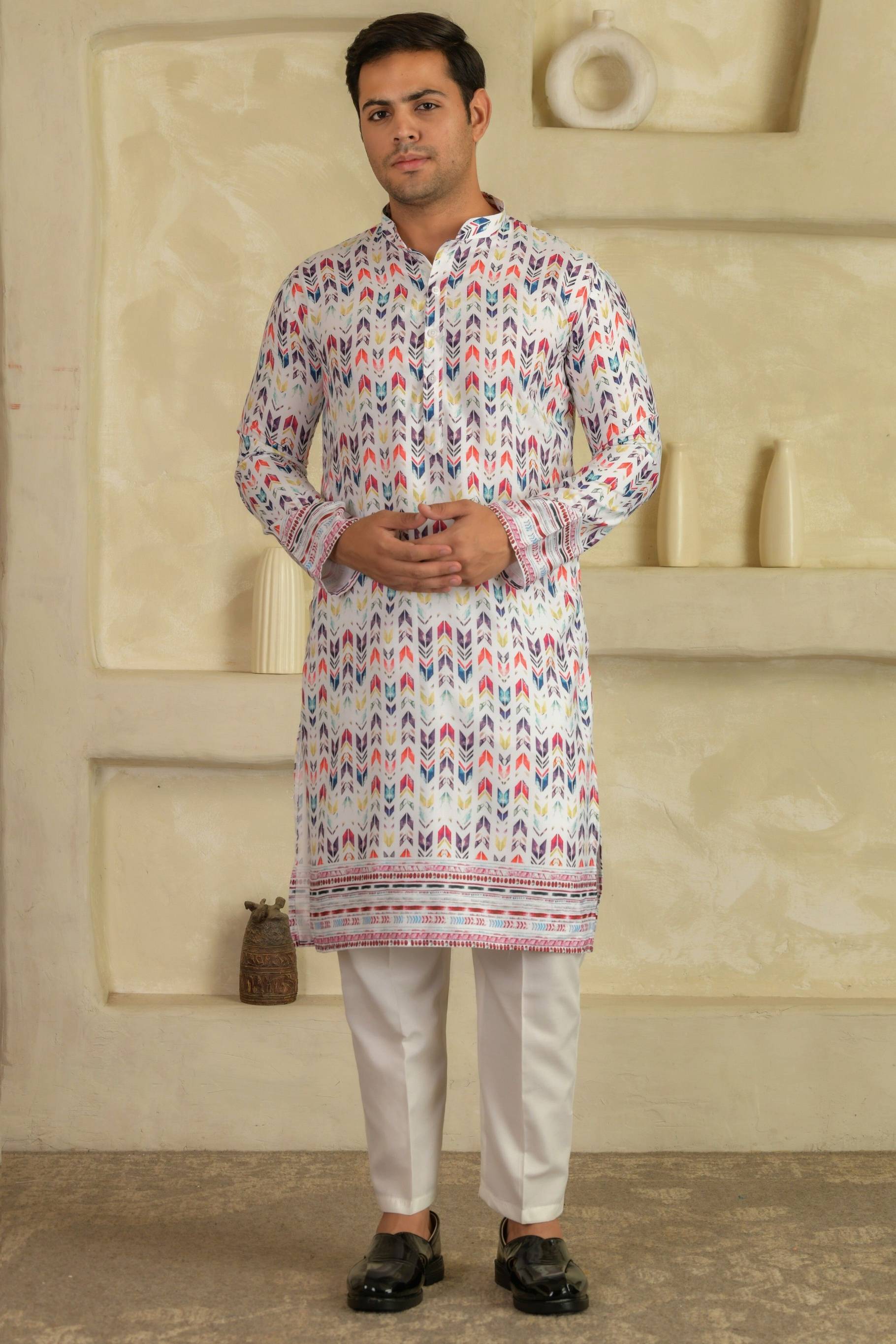 Stylish and breathable printed kurta pajama for men — perfect for festive and everyday wear. A classic pick for the modern man.