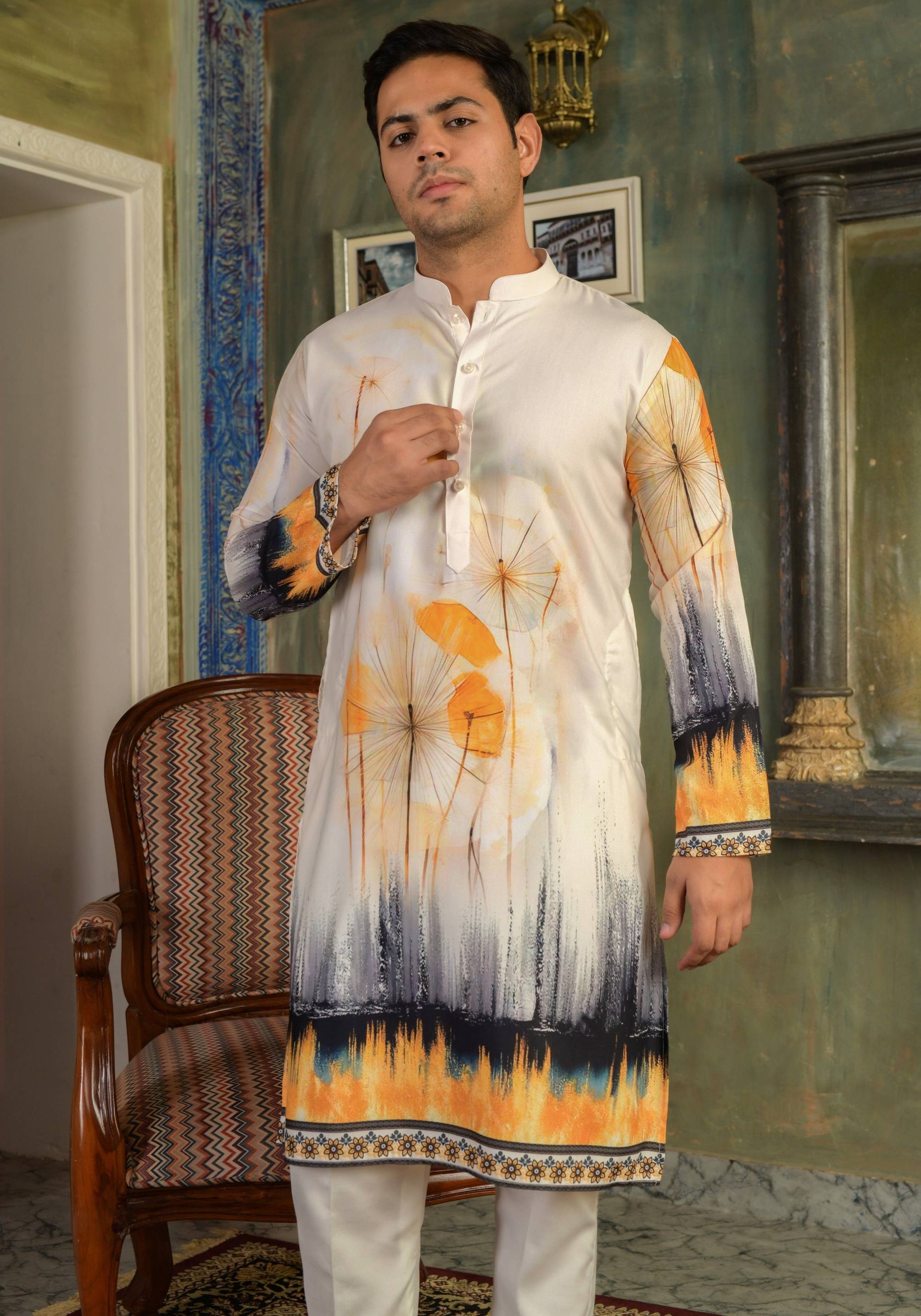 Stylish and breathable printed kurta pajama for men — perfect for festive and everyday wear. A classic pick for the modern man.