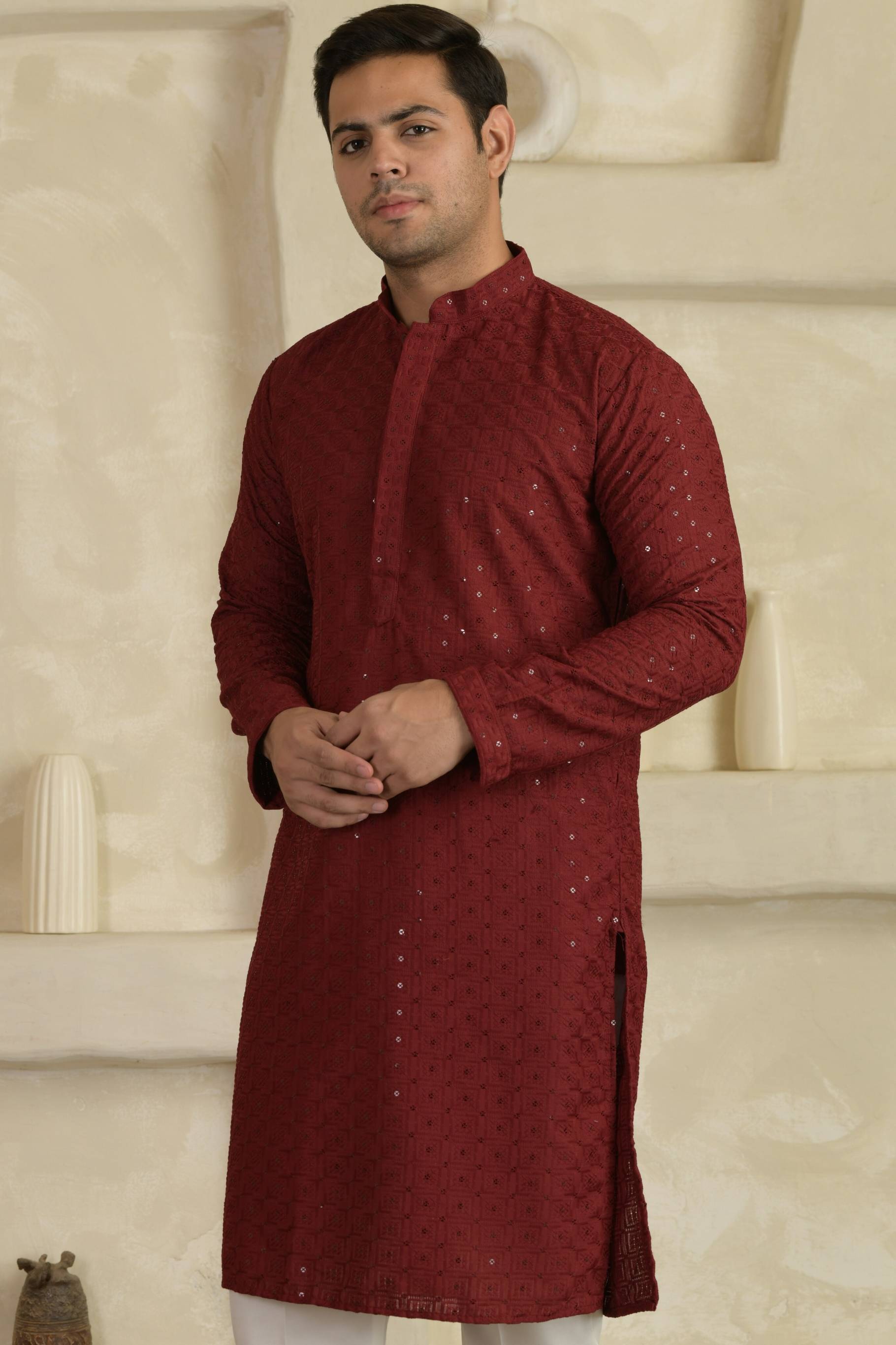 sequenced embroidery kurta pajama set for men, ideal for weddings, Diwali, Navratri, Eid, Holi, Raksha Bandhan, and festive occasions.