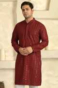 sequenced embroidery kurta pajama set for men, ideal for weddings, Diwali, Navratri, Eid, Holi, Raksha Bandhan, and festive occasions.