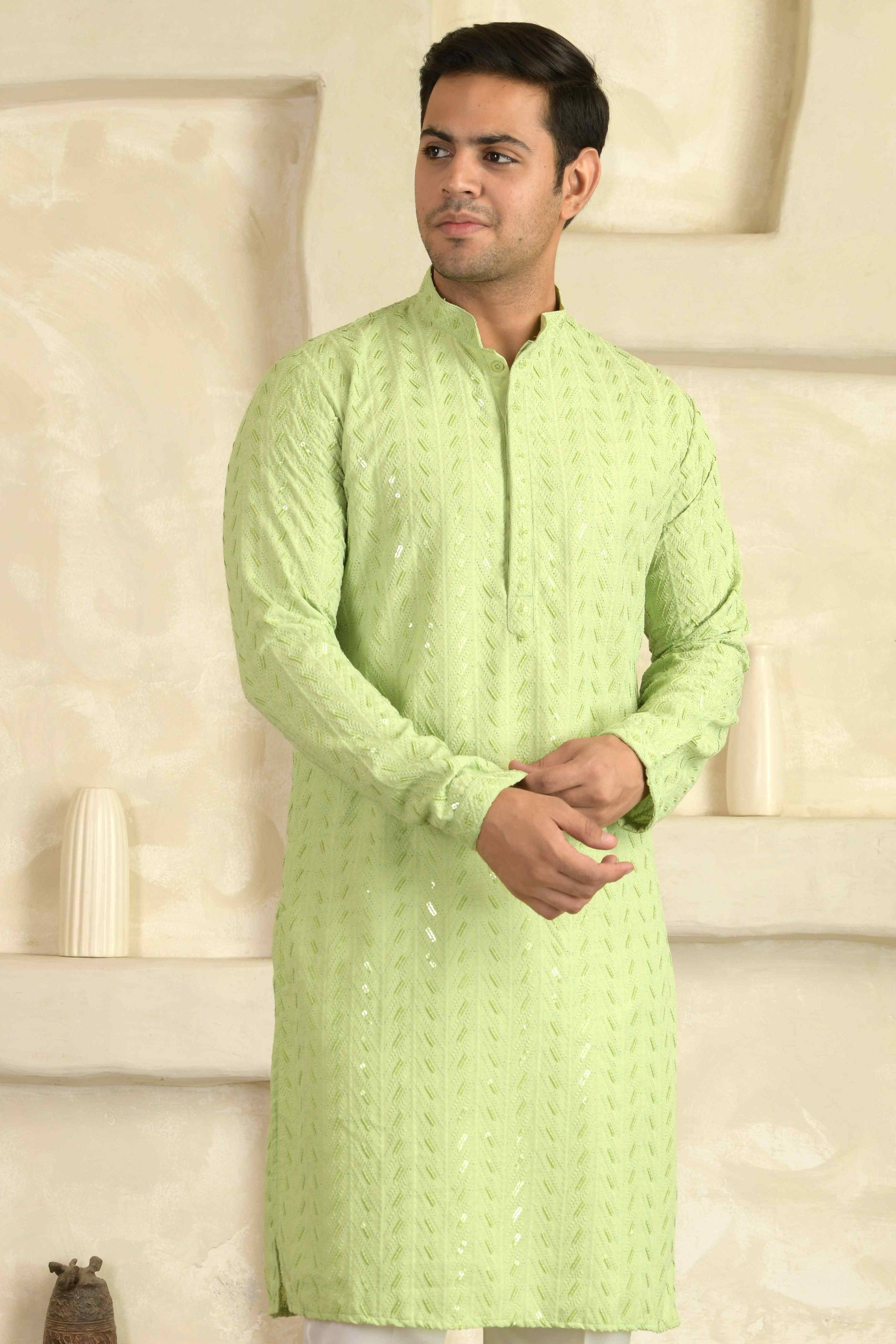 sequenced embroidery kurta pajama set for men, ideal for weddings, Diwali, Navratri, Eid, Holi, Raksha Bandhan, and festive occasions.