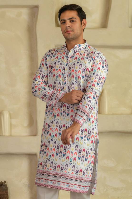 Printed kurta set for men, ideal for weddings, Diwali, Navratri, Eid, Holi, Raksha Bandhan, and festive occasions.