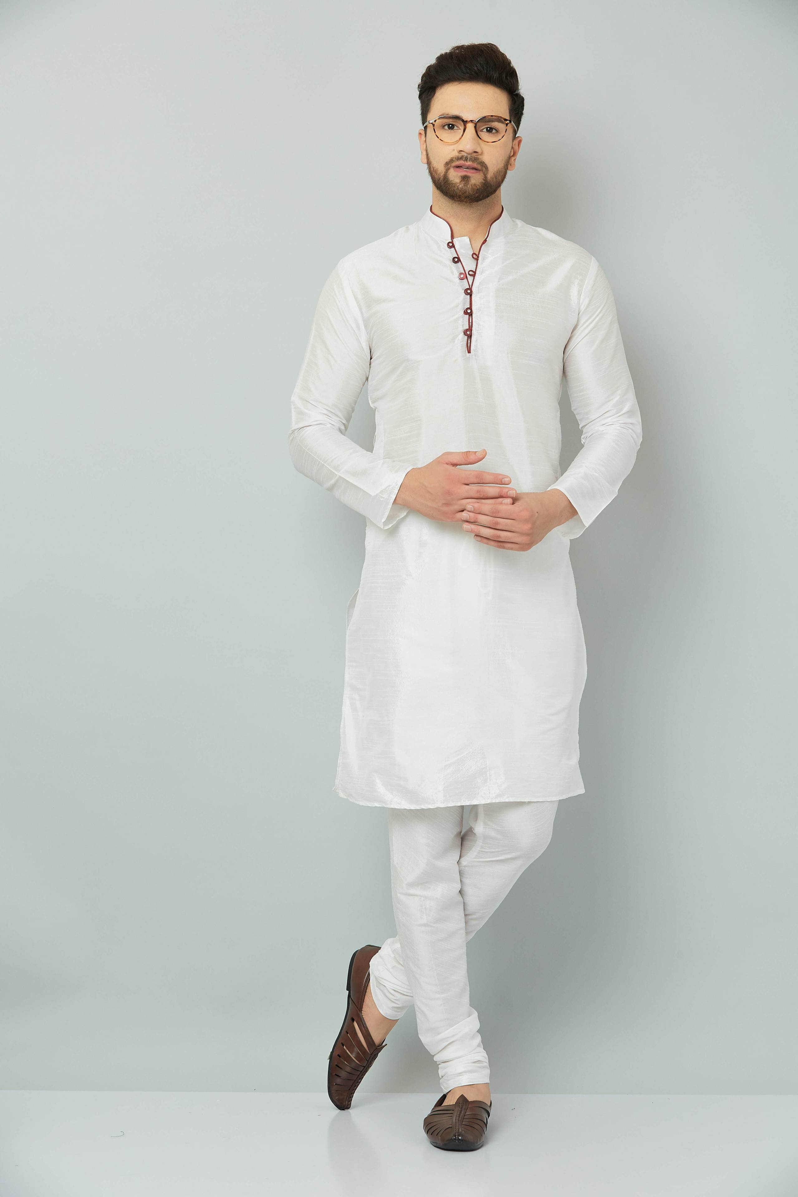 LEMONX Men Solid Silk Blend Straight Kurta  (White)
