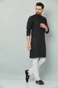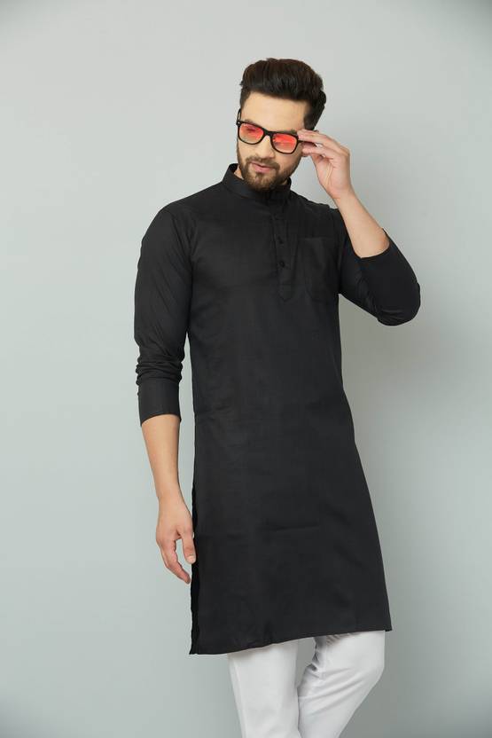LEMONX Men Solid Cotton Blend Straight Kurta  (Black)