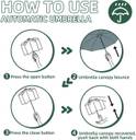 LENGLOY foldable umbrellas for men, women are designed with you in mind and built to ensure the ultimate protection and comfort in any weather condition. Measuring just 42 inches long when folded and lightweight for easy storage in purses, briefcases, backpacks, and more. LENGLOY Travel Umbrella is fortified with 9 resin-reinforced fiberglass ribs that flex slightly to withstand powerful gusts without turning inside out and defends against the elements like no other umbrella. A useful addition to any travel bag, backpack, or briefcase, this LENGLOY compact automatic travel umbrella helps keep you dry when the skies turn dark and the pouring rain begins. From warm Spring showers to fierce Fall storms and unruly wind tunnels, the LENGLOY umbrella makes for a great take-along companion when you need to get from here to there without getting drenched. Built to last through many rainy seasons, year after year, the LENGLOY compact automatic travel umbrella features durable steel construction with a canopy made of reliable, waterproof pongee fabric. Sturdy, yet lightweight, the umbrella helps get you where you're going without having to worry about the weather. Thoughtfully designed, the umbrella's canopy automatically opens and closes with the simple touch of a button. Push the button to open; push the button to close. After the canopy collapses, manually pull the upright support down into the locked position. With the umbrella back in its base, the auto-open mechanism is ready to be used again. The LENGLOY compact automatic travel umbrella includes a slip-on sleeve, which helps keep the umbrella neatly stored. The storage sleeve fits securely around the closed-position umbrella, and lifts off easily when it's time to take cover and venture outside. The umbrella comes equipped with a soft, secure-grip handle, which helps ensure a comfortable hold, whether casually window-shopping downtown or dashing from your car to the front door. A wrist strap at the end.