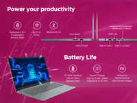 This laptop is built to keep pace with your busiest days. It comes with full-function Type-C ports that support faster charging, data transfer, and display output, while a larger touchpad improves navigation. The up-to-FHD camera with a physical privacy shutter gives you confidence during video calls. With its larger battery and Rapid Charge Boost, you can get up to two hours of use in just 15 minutes of charging—keeping you powered up when it matters most.
