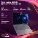 See your content come alive on the 35.56 cm (14) WUXGA IPS display. With a 16:10 aspect ratio, you get extra vertical space for multitasking, reading, or watching. The display offers vibrant colours and wide viewing angles, while the TUV-certified screen reduces eye strain during long hours.