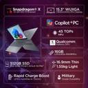 Equipped with the potent Snapdragon X Series Processor, this PC delivers lightning-fast performance and extended battery backup. It includes built-in AI to enable you to do more, do better, and do smarter, faster—and without slowing down.