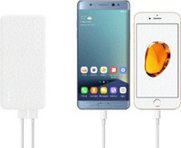You can use this Lithium Polymer power bank to charge both Android and iOS devices.