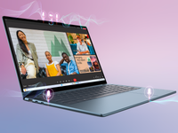 Redefine productivity with Premium Suite. The responsive Yoga-coated keyboard resists oil and water for precision, while the whisper-quiet touchpad ensures smooth navigation. Hear Dolby Atmos sound and rely on sharp visuals and 360° audio for calls.