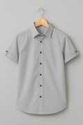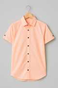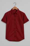 Boys Regular Fit Solid Mandarin Collar Casual Shirt