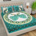 Leo Creation Cotton Double Bed Spread (Multicolor, Green)