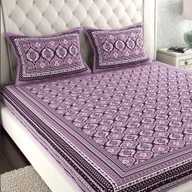 Leo Creation Cotton Double Bed Spread (Purple, White)